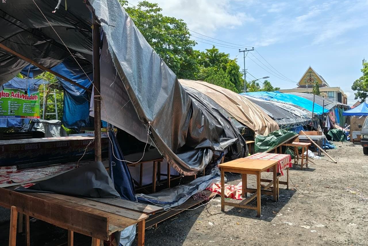 Sementara itu, pedagang terdampak berharap ke depan ada perhatian lebih terhadap kualitas tenda, mengingat kegiatan ini berlangsung selama satu bulan penuh dan menjadi sumber penghasilan utama mereka selama Ramadhan.