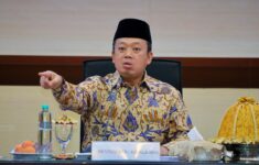 Menteri ATR/Kepala BPN Nusron Wahid dalam Rapat Pimpinan yang berlangsung secara daring dan luring di Aula Prona Kementerian ATR/BPN, Jakarta, Kamis (16/10/2025). Dok: ATR//BPN